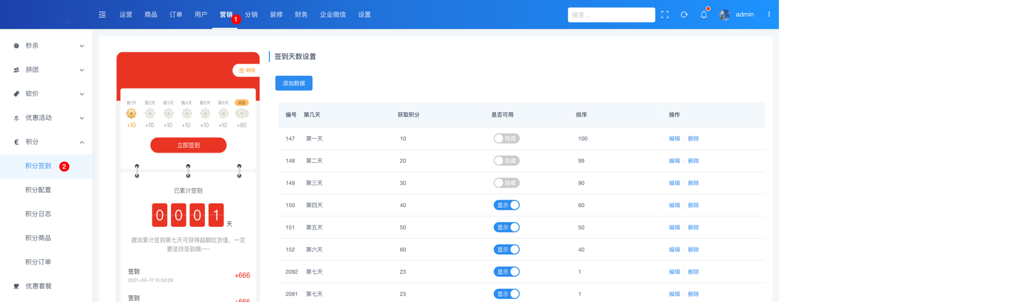 营销 > 积分 > 签到配置