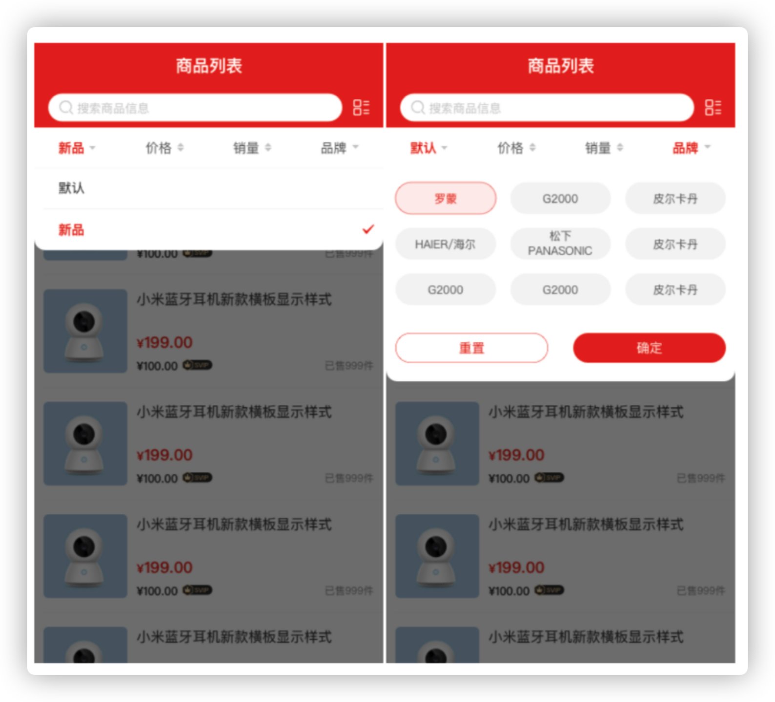 【品牌筛选】:移动端选择商品分类或搜索商品关键字后,页面右上角会展示“品牌”,系统会自动读取结果中商品已关联的品牌,点击品牌名称可进行品牌筛选。