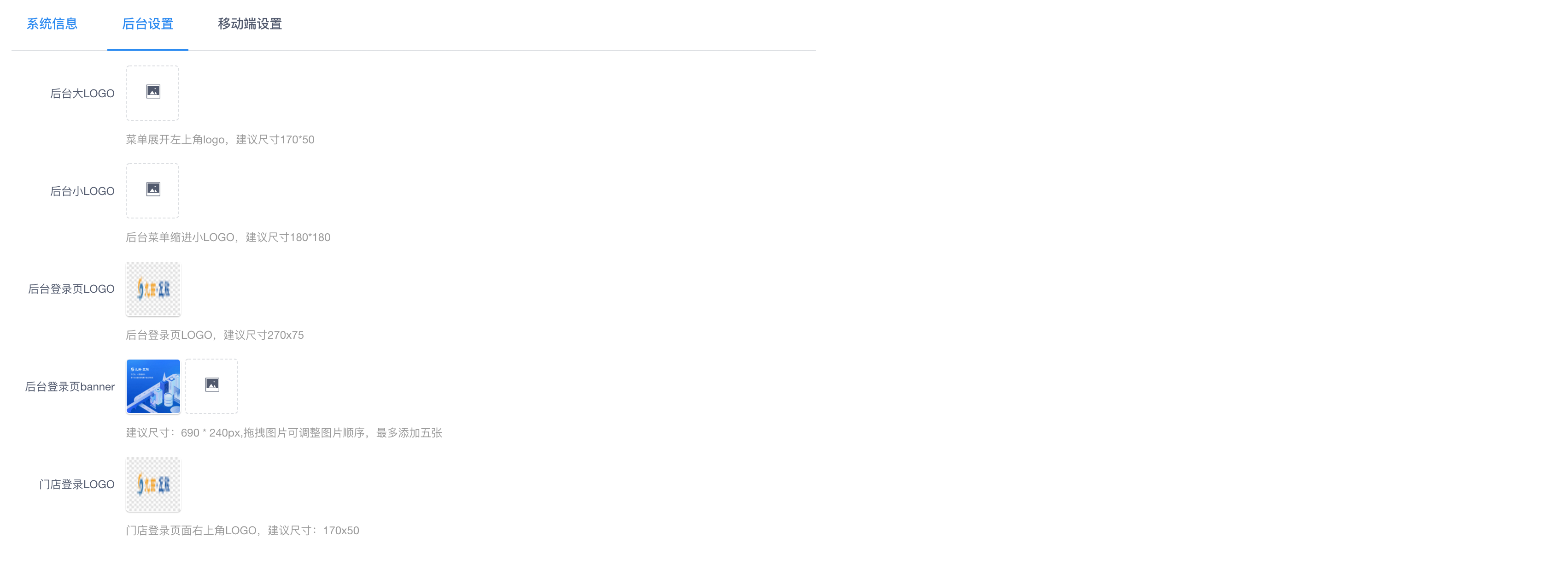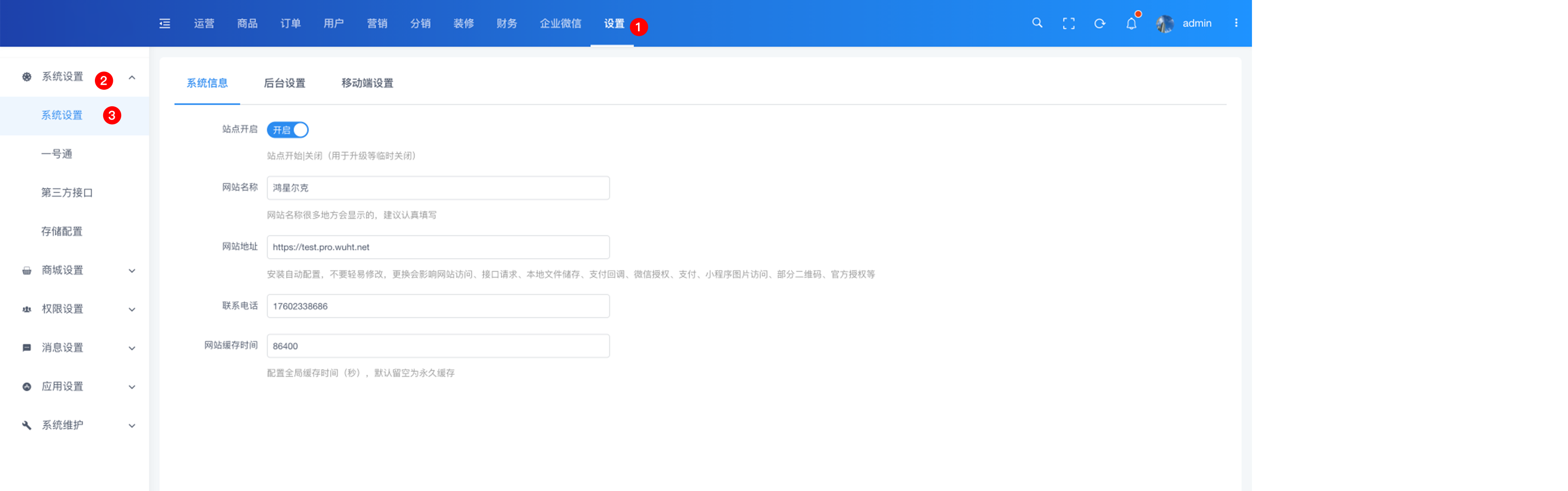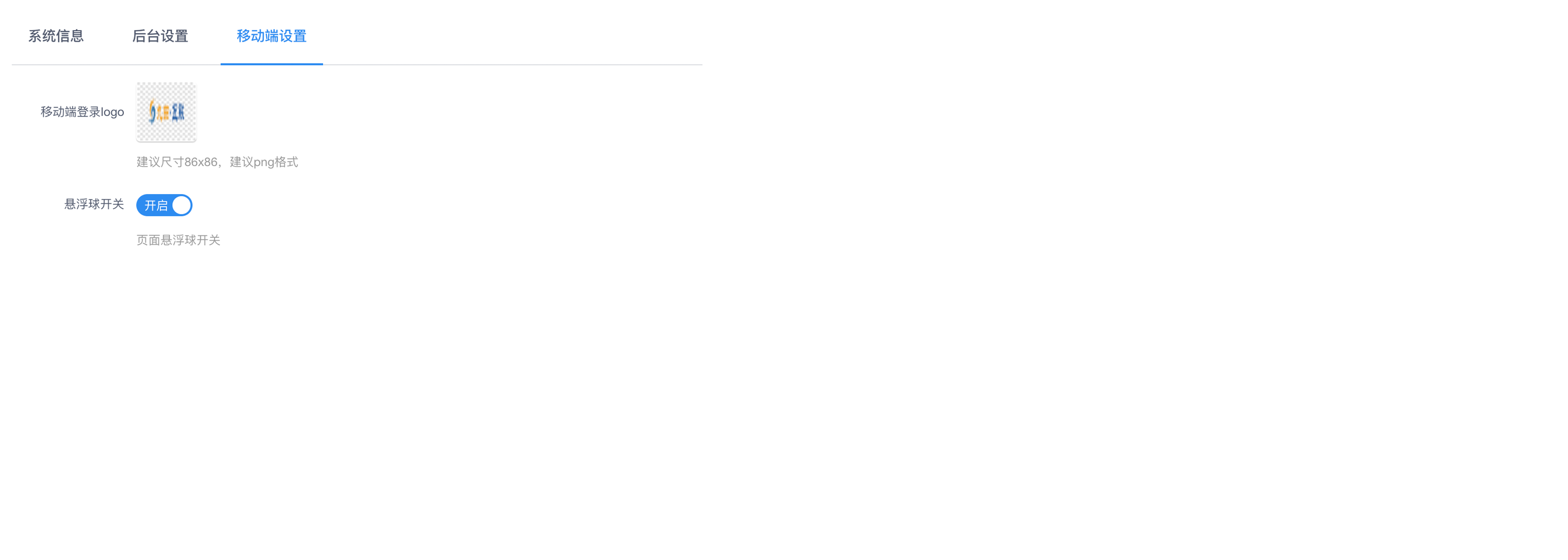 基础设置分为系统信息、后台设置、移动端设置和首页分享