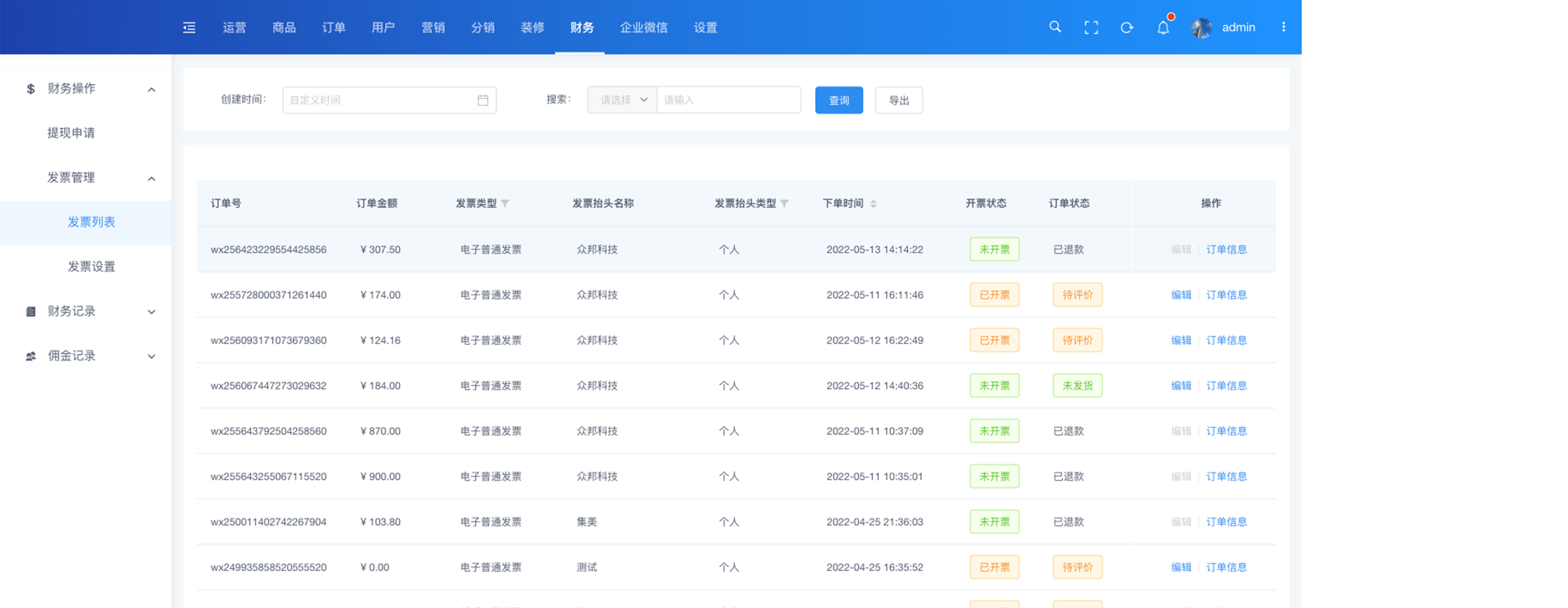 集中管理的提现与发票,让财务数据统计更加方便、高效