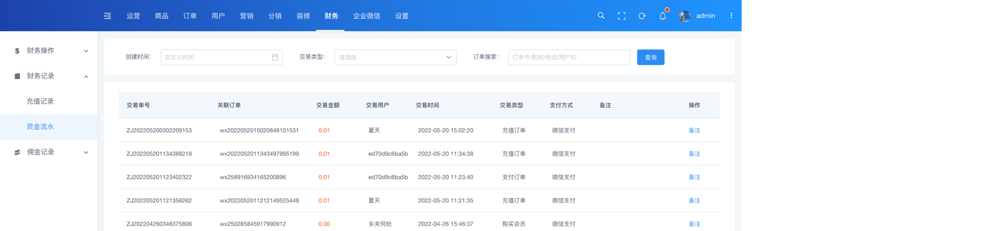 1. 充值记录