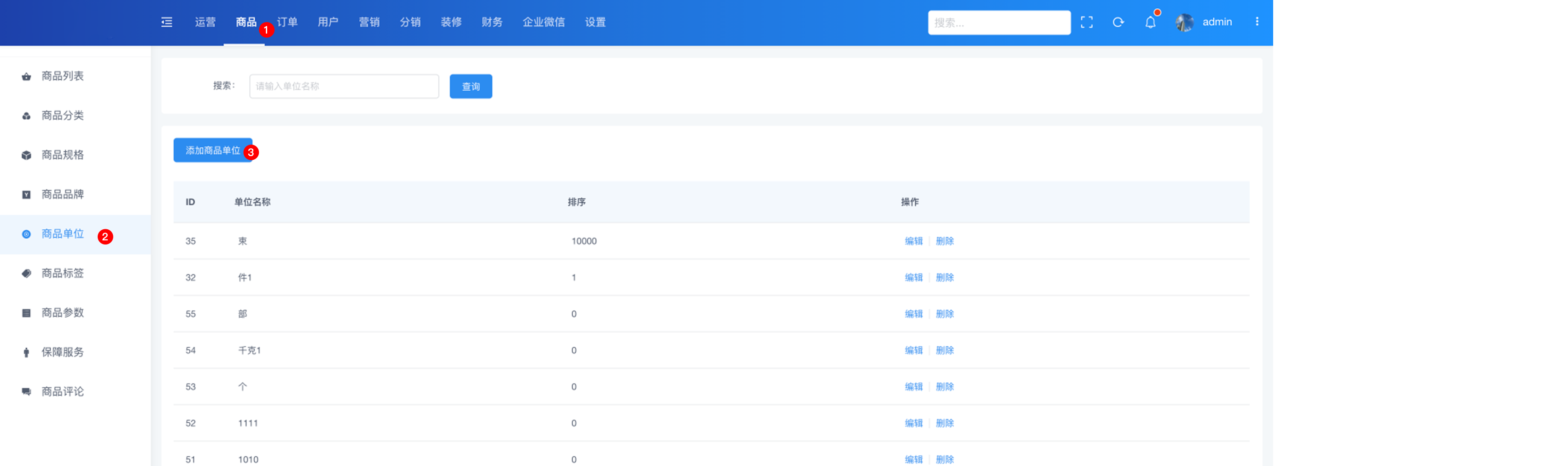 商品 > 商品单位