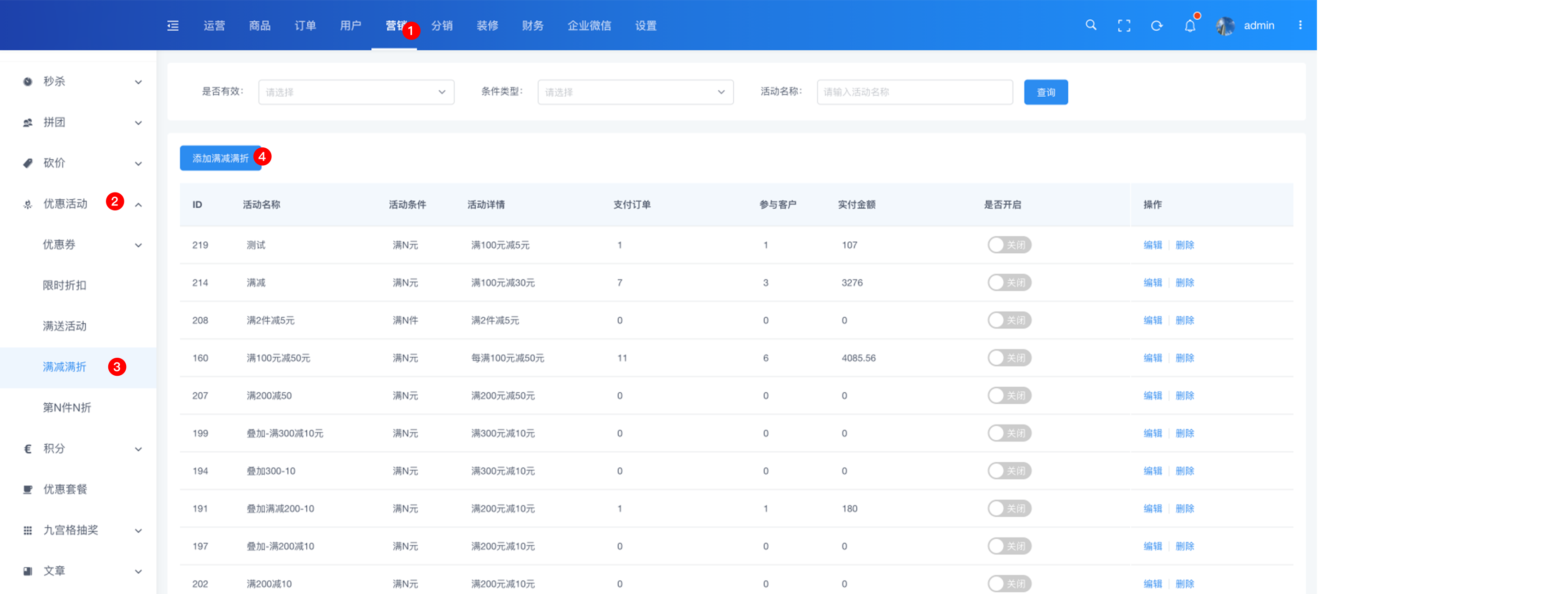 营销 > 优惠活动 > 满减满折