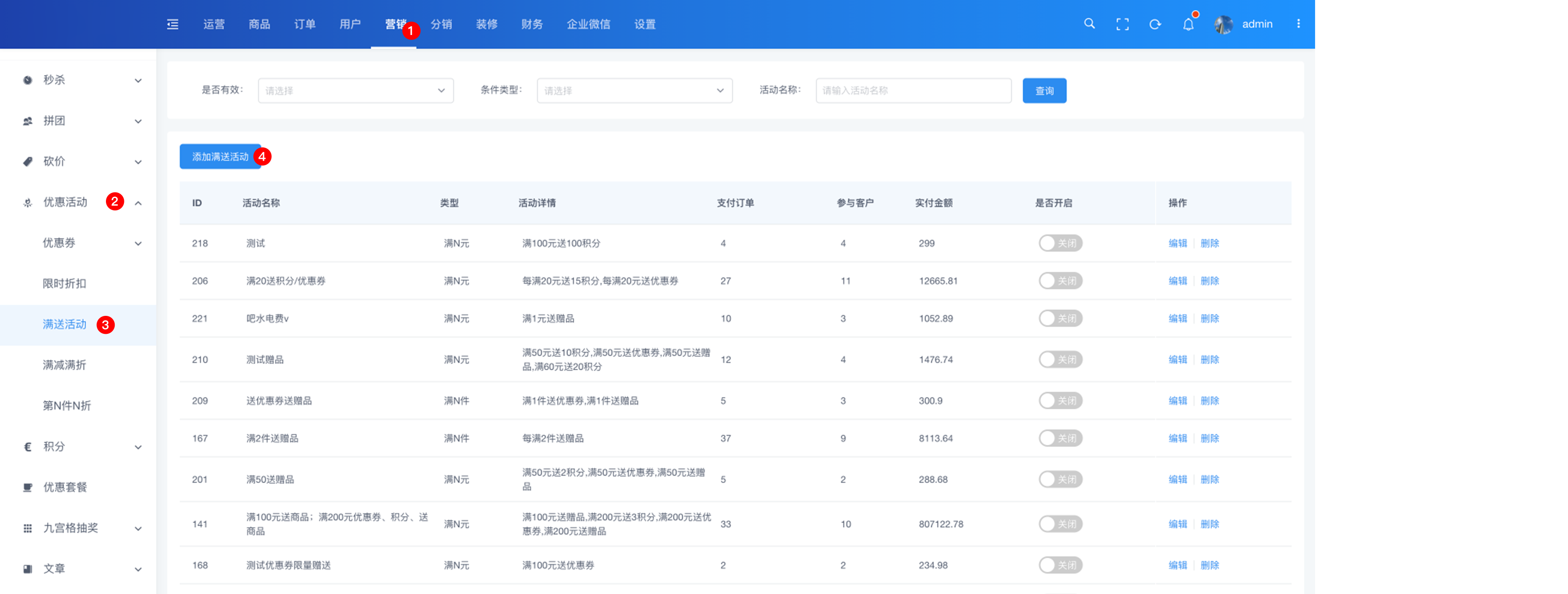 建立满送活动,商家可以在一定时间内举行满N元/件送优惠券、积分、赠品的活动,来刺激提升客户的转化及客单