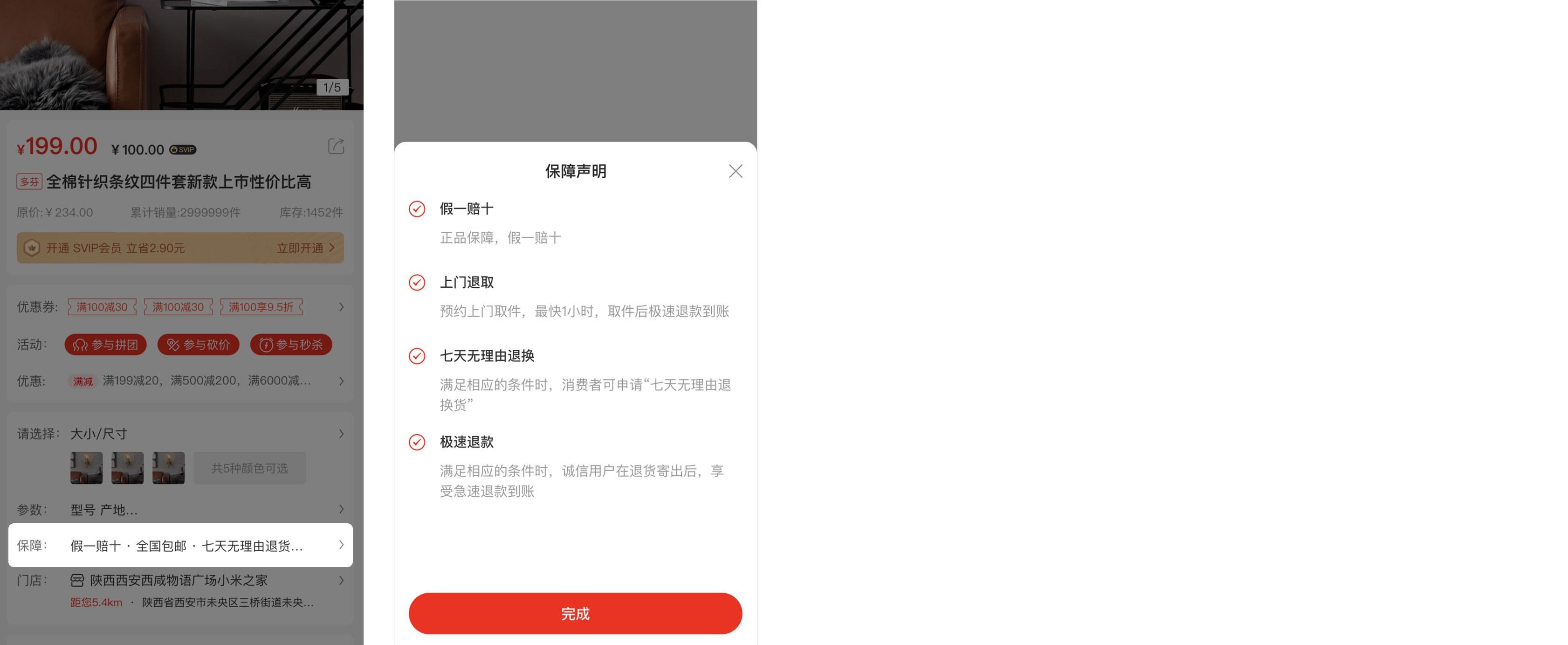 商品详情页显示保障服务内容,让买家选购更放心,同时减少售后服务问题。