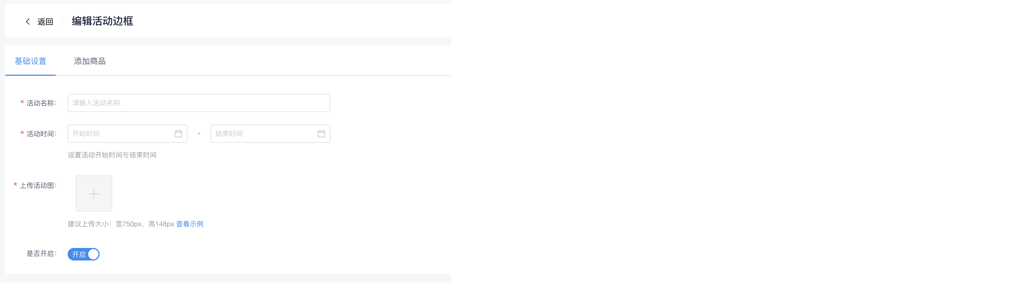 后台可设置活动名称(仅后台展示)、活动时间、上传图片
